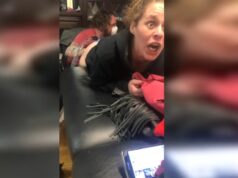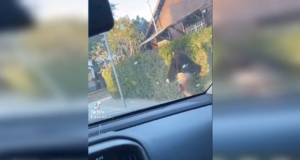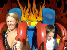 Ze houdt haar zoontje gelukkig wel goed vast tijdens dit wilde ritje…