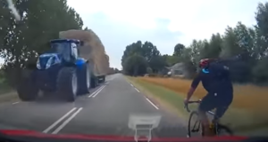 Vrachtwagenchauffeur laat toepasselijk liedje horen voor irritante wielrenners…