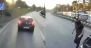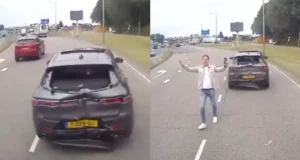Bestuurder in Golf doet brake test maar vrachtwagenchauffeur remt niet af…