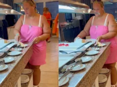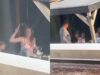 Maar deze kerel geeft een goed begin van de dag. Hij krijgt namelijk een kort showtje van Fabiola Volkers tegen het raam…